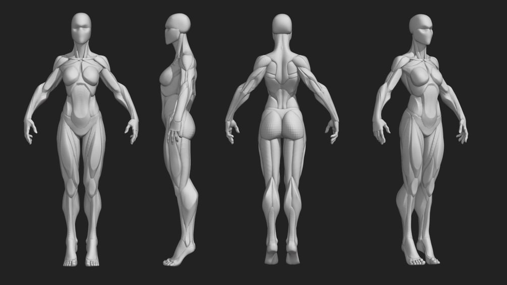 *Note: all parts of the Character Blockout are joined as a single mesh inside the FBX and OBJ files but they are all separate in the BLEND file