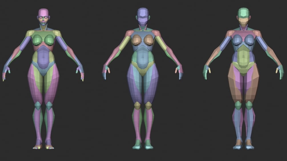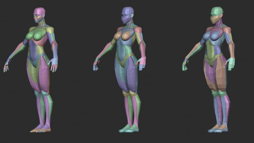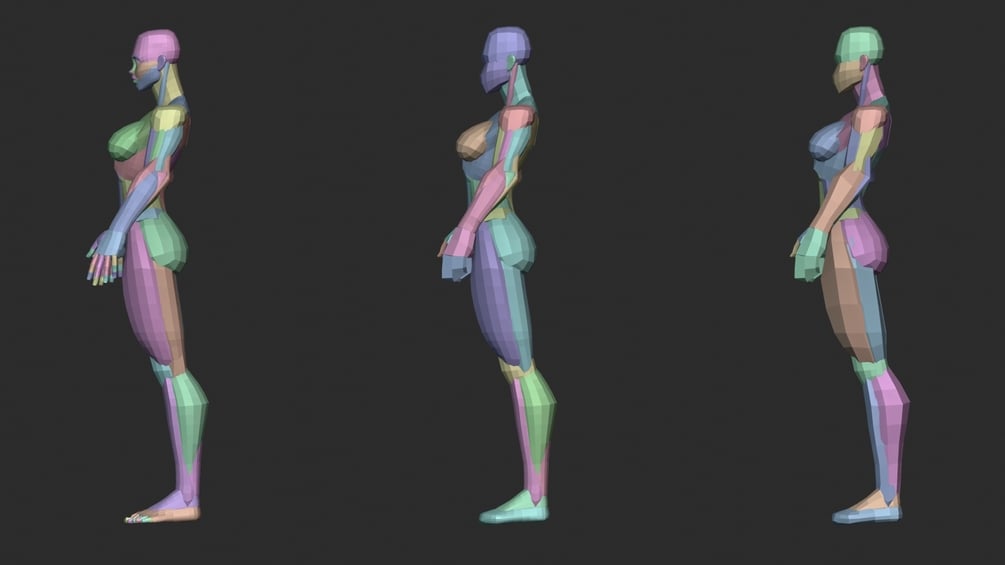 Female Character Anatomy Blockout Level 0,1,2,3