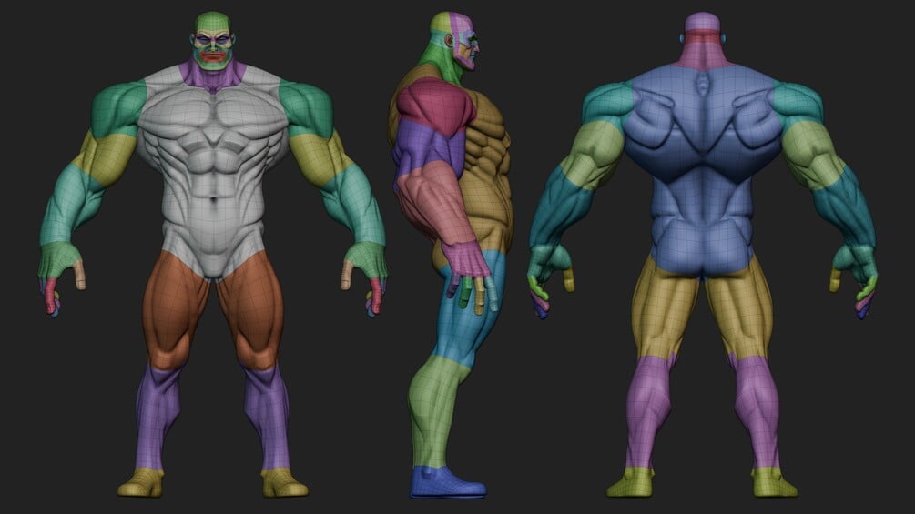 - Has Polygroups (Zbrush) and Face sets (Blender)